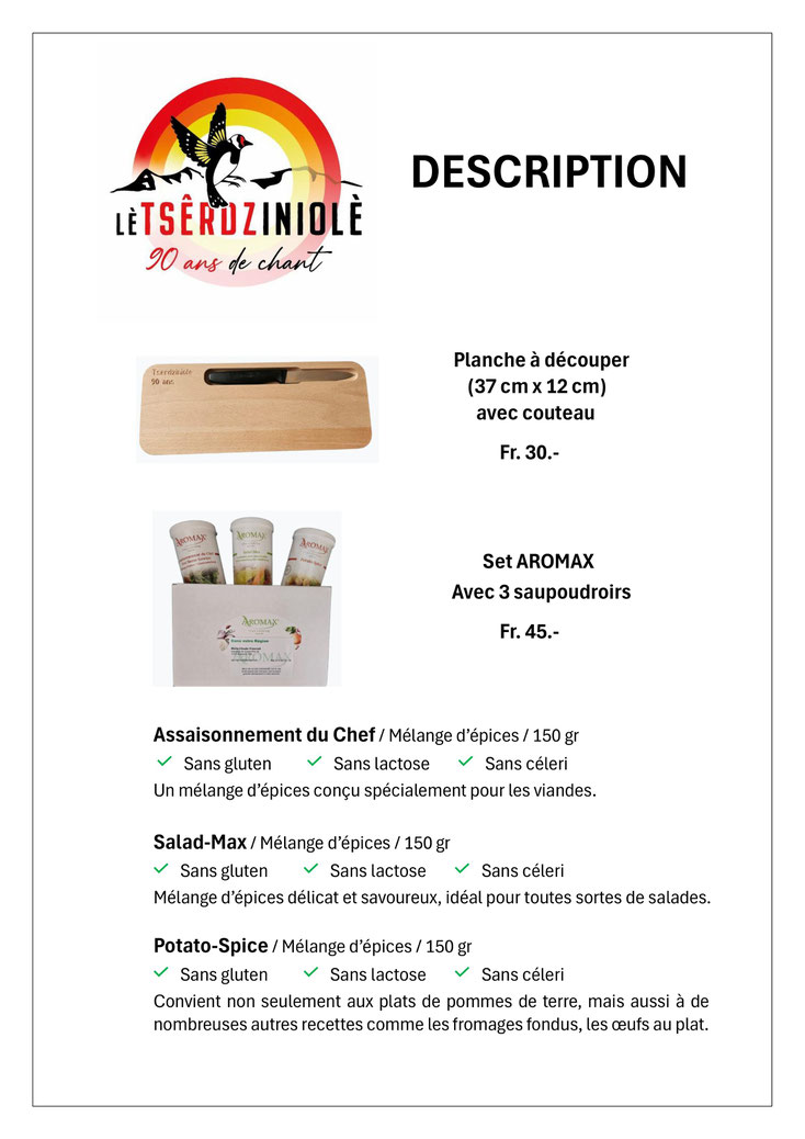 Pour financer nos prochaines manifestations, nous proposons une vente d’articles par les membres du chœur: